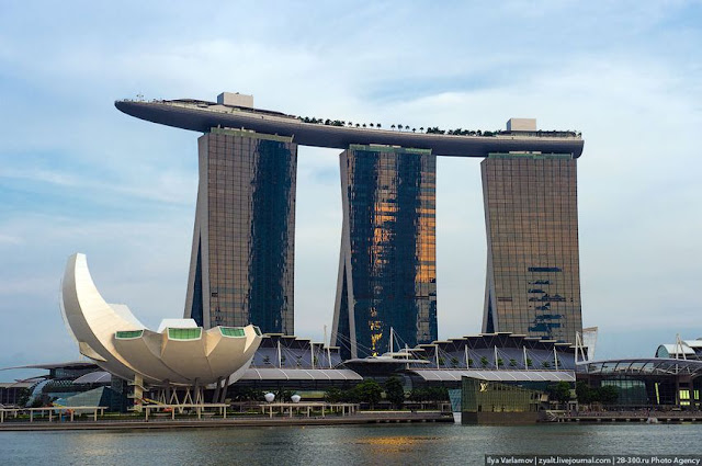 Sabias que há um novo hotel em Singapura, localizado na Marina Bay Sands que tem 2560 quartos?. Até aqui tudo bem. O facto curioso é que este hotel tem no topo, a 55 andares acima do solo, ou seja, a 150 metros do chão, a maior piscina do mundo, situada àquela altura e construída de tal forma que se confunde com o céu.